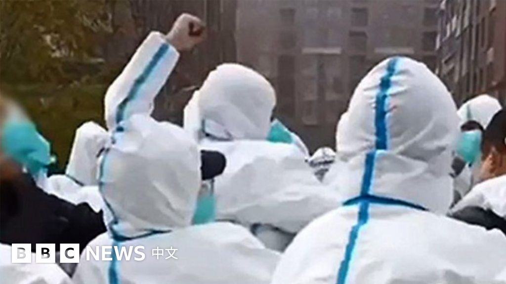 BBC看到的影片顯示,在中國鄭州的富士康超級工廠,抗議者與身穿防護服的警察發生衝突,一些人似乎受傷。