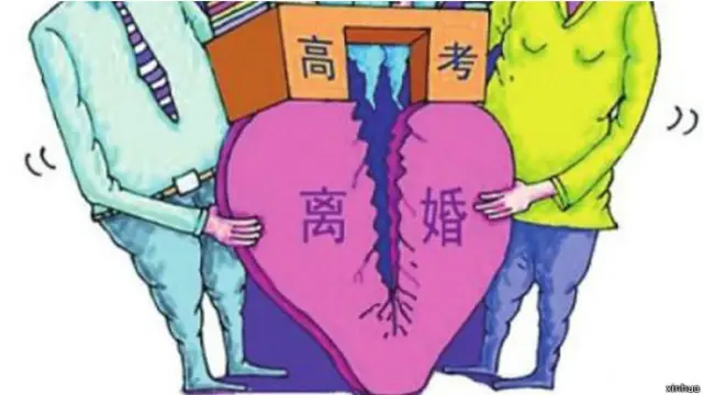 一看到孩子就「休戰」,為了孩子的學業不受影響,很多婚姻出現問題的父母對離婚避而不談,萬事都要等到高考結束後。統計表明,每年高考過後的6到9月份,婚姻登記處登記離婚的案例都會突增,形成一個離婚的「小高潮」。(據7月10日《北京晨報》)