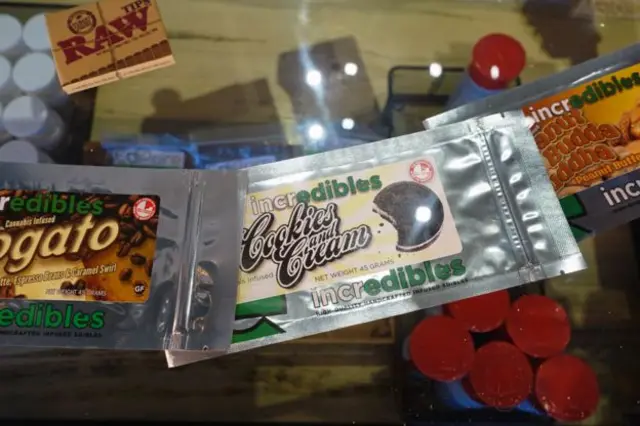 不想自己捲煙?商店裏陳列著各種儀器、工具。根本不抽煙?旁邊的櫃台上擺著各種品牌加了大麻的飲料和各色小吃零食,比如薄荷糖、巧克力、糖果。