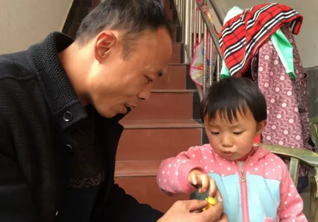 兩歲的劉思琪(音譯)坐在奶奶腿上,說肚子痛。一個男人拿著玩具塑料鴨試圖轉移她的注意力。慢慢地,總算把思琪逗笑了,開始和他一起唱兒歌。