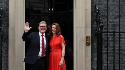 蘇納克與夫人最後一次走出唐寧街10號首相府。他在簡短髮言中: