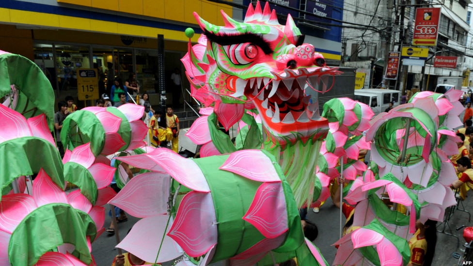 菲律賓馬尼拉的唐人街有舞龍表演。
