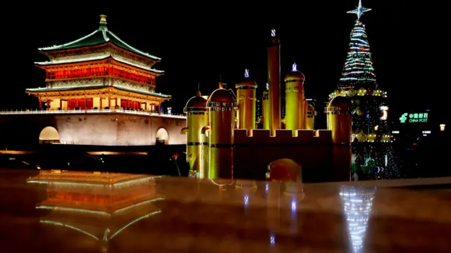 聖誕樹與中國千年古城山西相輝映。