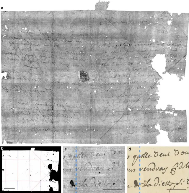 研究報告解釋說,17世紀歐洲書寫使用的墨汁含鐵,所以精密掃描儀可以探查到紙上的墨跡。當時的信紙折疊很複雜,但還是可以把每一折疊層上的字跡掃描後拼出信的全文。