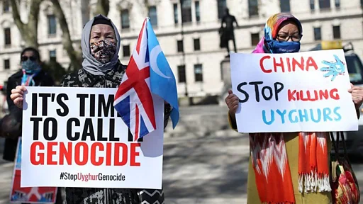 美國指責中國鎮壓新疆以穆斯林為主的維吾爾族人是種族滅絶行為,而中國一再否認這一指控。