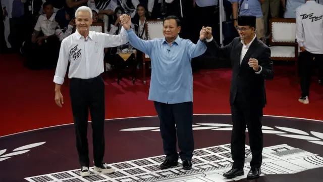 - 三名總統候選人分別是現任國防部長普拉博沃(Prabowo Subianto)、雅加達前省長阿尼斯(Anies Baswedan),以及中爪哇省長甘賈爾(Ganjar Pranowo)。