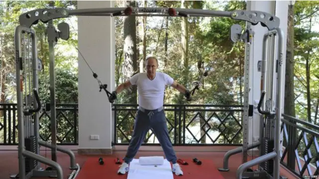 在俄國,普京以「硬漢」形像著稱。從前,也曾傳出普京釣魚、騎馬、打獵的圖片,有些照片中普京赤裸上身秀肌肉。