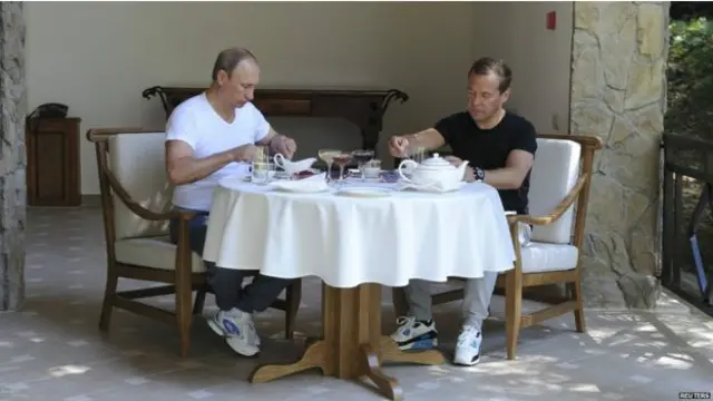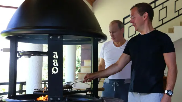 普京和梅德韋傑夫相約健身、燒烤加品茶